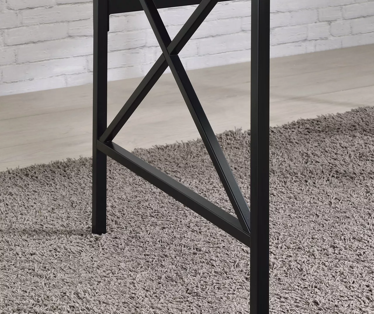 Modern rustic styling for today’s offices or homes, the Corday desk combines a gray wood look with black metal accents in a desk that adds storage and style to any room. An enclosed back panel offers hidden storage for all your messy computer peripherals while easy-open access and dual USB ports and an electrical outlet offer easy charging for devices. The style and utility of the Corday desk provides a compact footprint that will fit well in an apartment or large home.