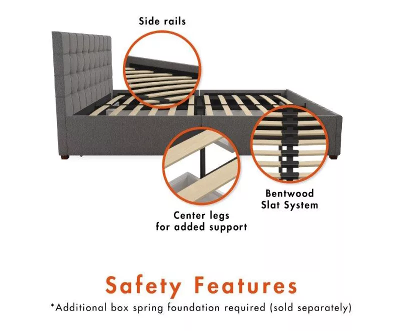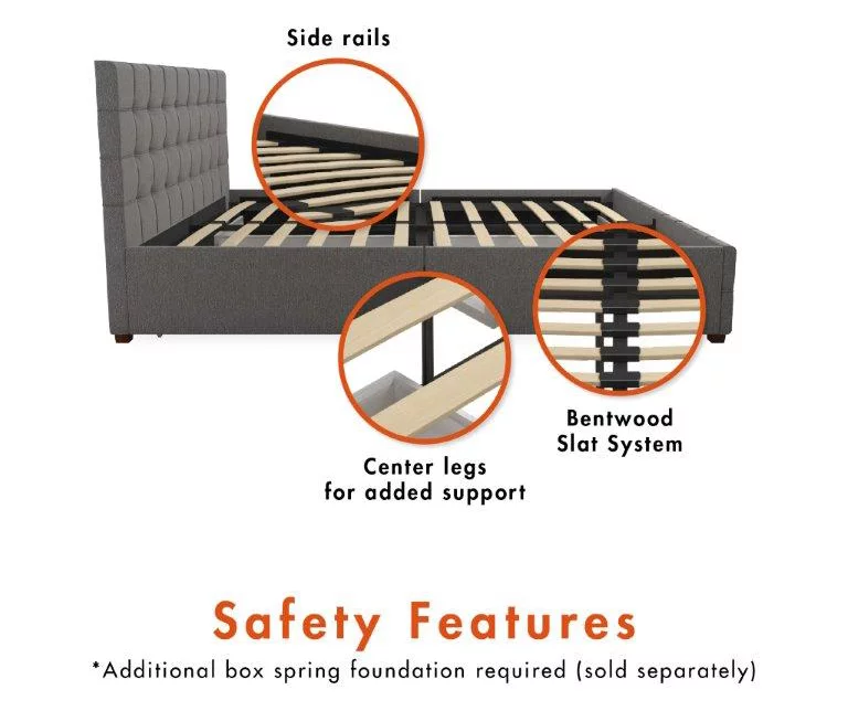 The CosmoLiving Elizabeth upholstered bed with storage – coming in hot! It is designed with a flawless profile that features square-tufted stitching and because adulting is hard, it has four rollout drawers, so you can store all of your shoes and stuff. The sturdy wooden frame includes secured bentwood slats, so you can say goodbye to your old foundation and hello to a solid night’s sleep. The Elizabeth includes metal side rails and center metal legs to guarantee stability and durability for all of your evening activities and it is upholstered with a linen fabric that is dripping in finesse.
