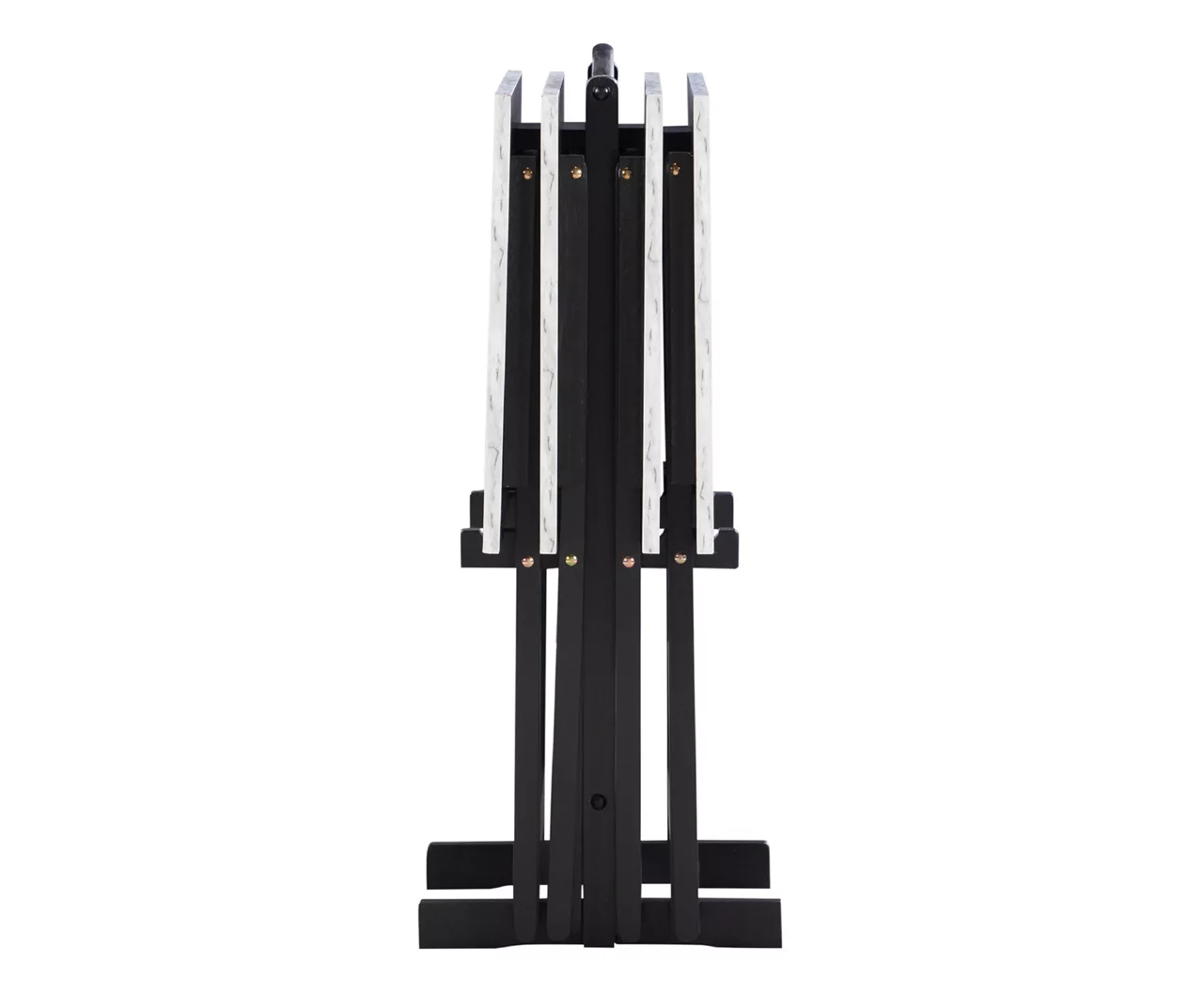 Entertain in sophistication with this tray table set! The four tables feature faux marble tops that are perfect for an extra surface or entertaining guests. When you need to clean up, these tables easily store on the included stand with a built-in handle.