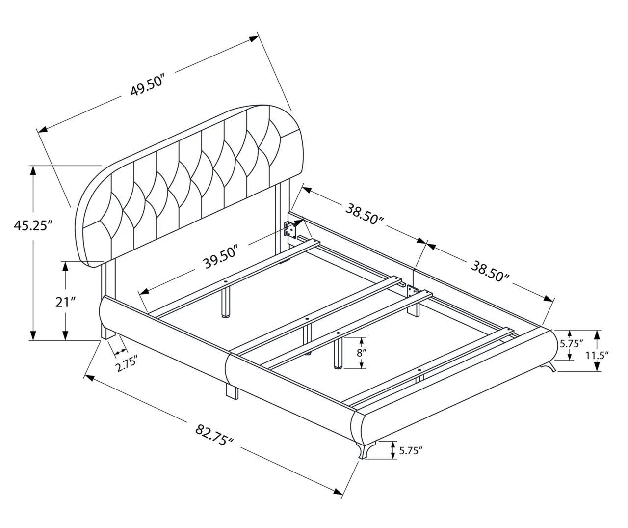 - Product dimensions: 82.75″L x 49.5″W x 45.25″H